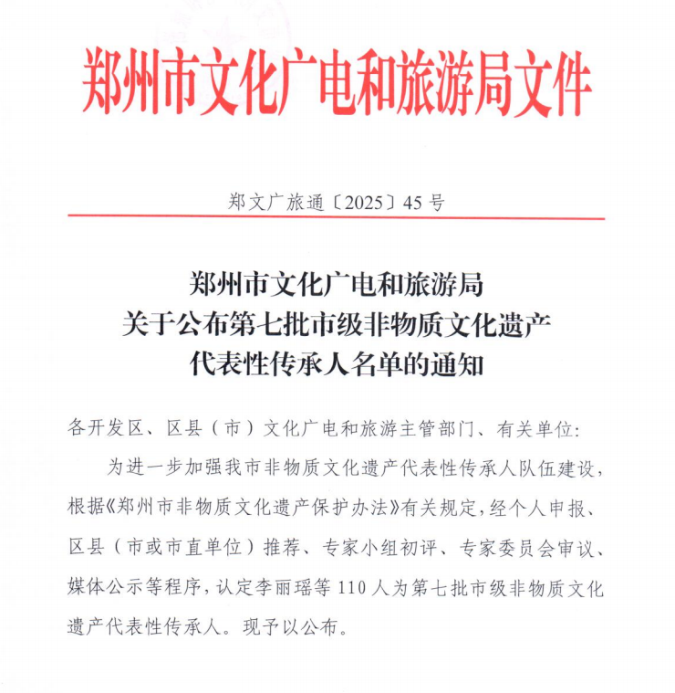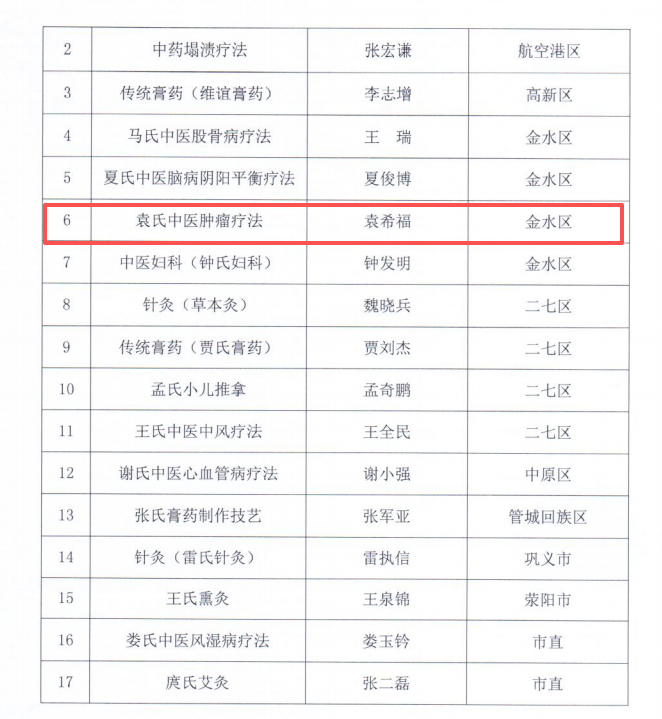2025年9月26日,郑州市人民政府下达红头文件,郑州市文化广电和旅游局正式颁布:袁希福院长,被认定为“郑州市市级非物质文化遗产代表性传承人”