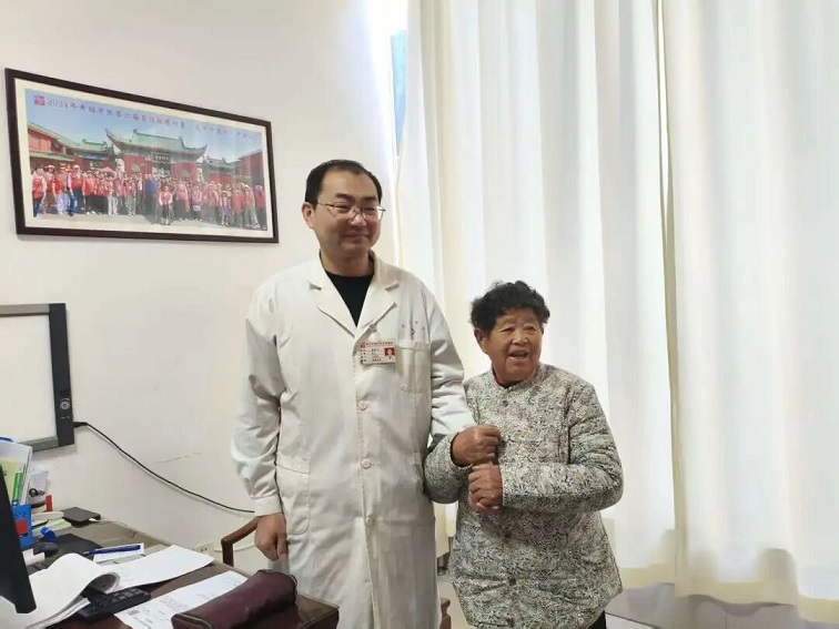 2025年11月1日,赵阿姨特意从1500公里外的贵州赶过来,到了希福医院就去见张主任,一把拉着主任的手,非常开心。老太太说:“当初患病时,前胸后背疼,走不了路,吃了中药,5天能站起来了,10天就下床了!”