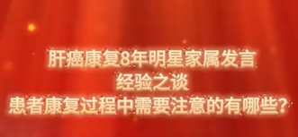 肝癌康复8年明星家属发言经验之谈:患者康复过程中需要注意的有哪些?